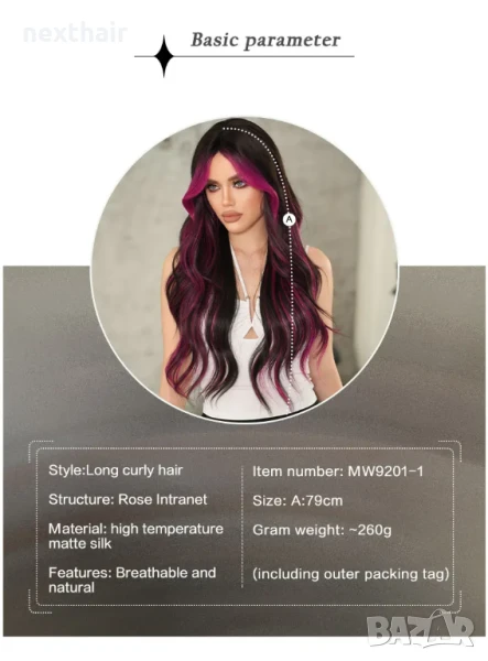 Ефектна перука от синтетичен косъм, може да издържи на температура от 150-170 градуса.