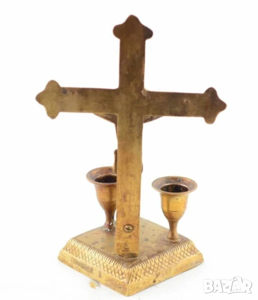 Старинен бронзов настолен кръст с две свещи разпятие Исус Христос, снимка 1 - Антикварни и старинни предмети - 51313992 Старинен бронзов настолен кръст с две свещи разпятие Исус Христос, снимка 2 - Антикварни и старинни предмети - 51313992 1/2