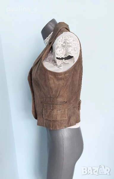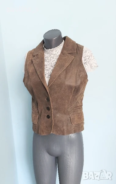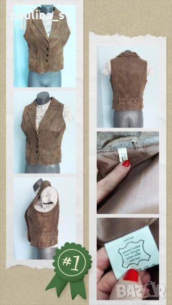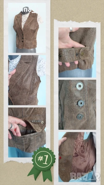 2️⃣. Колаж / XL / 2XL - Елек с ревери от естествен набук. Цената е крайна, без пазарлъци 45 евро. Бежов шикозен елек от естествен петнист набук. Моделът е втален с два шикарски джоба отстрани и кокетни ревери, кожата е здрава, без дефекти; хастарът също, стилно-елегантна дреха със скъпарско звучене. Без дефекти и етикет, като нов, не се нуждае от химическо чистене.