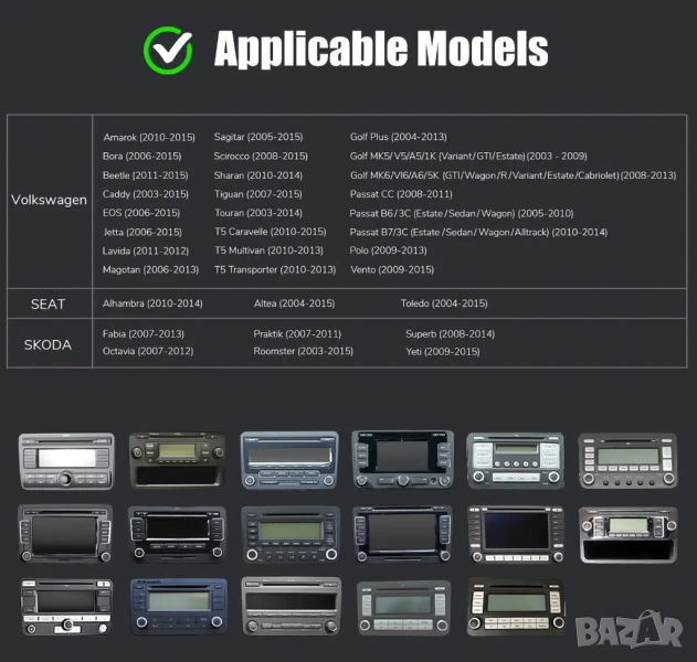 ^ За марки/модели на автомобили: Volkswagen, Инсталационни размери: Volkswagen special size