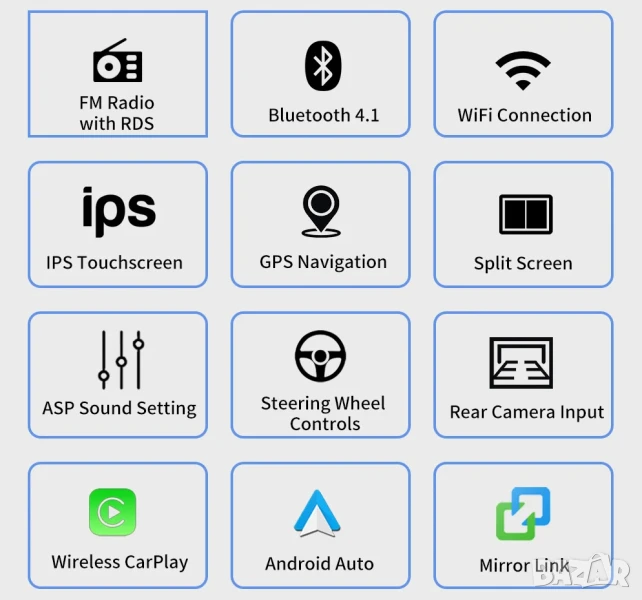 Списък с марките и модели на автомобили, на които пасва тази мултимедия, има в края на публикацията. ОБЪРНЕТЕ ВНИМАНИЕ ДАЛИ ФОРМАТА НА ПРЕДЛАГАНАТА ОТ НАС МУЛТИМЕДИЯ ОТГОВАРЯ НА ОТВОРА НА СРЕДНАТА КОНЗОЛА НА АВТОМОБИЛА ВИ, ВГЛЕДАЙТЕ СЕ В ЪГЛИТЕ.