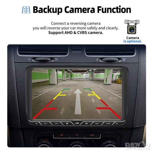10. Автоматичен обратен изглед за паркиране: Когато колата е на задна предавка, дисплеят автоматично ще премине към изглед на камера за обратно виждане. Възможен е и монтаж на предна камера - след изключване от задна предавка, екранът автоматично ще превключи към изглед предна камера за 10 секунди.