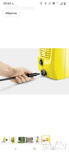 Съдържание на кутията: водоструйка, пистолет за високо налягане, 3 м маркуч за високо налягане, нож за издухване на мръсотия, вграден воден филтър, адаптер за свързване на градински маркуч A34
