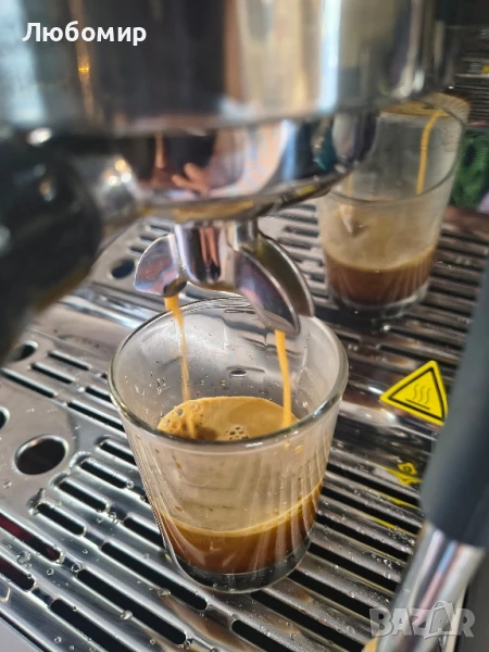 Два термоблока: Нагревателната система се състои от два термоблока, всеки от които осигурява собствен термоблок за екстракция на еспресо и генериране на пара. Това позволява едновременно приготвяне на еспресо и разпенено мляко.