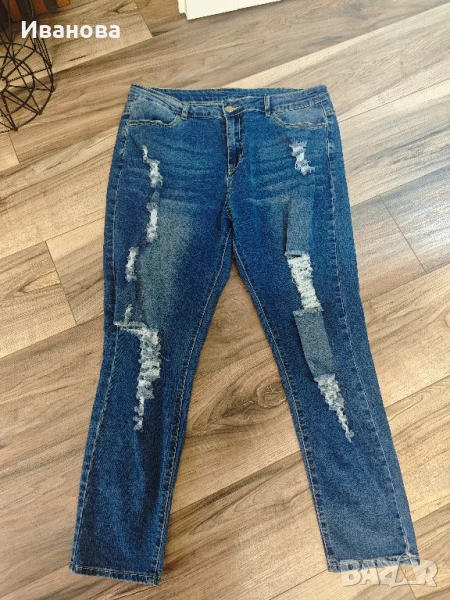 Ефектни дамски дънки в син цвят с накъсан ефект. Много меки и еластични. Дънките са чисто нови. Размер ХЛ.