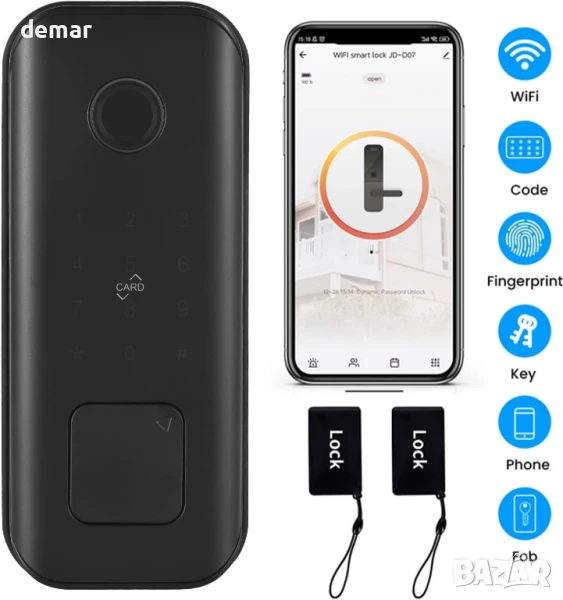 Тази интелигентна ключалка за врата с WiFi предлага множество методи за достъп, включително приложение, пръстов отпечатък, парола, карта и ключ, с усъвършенствана полупроводникова технология за пръстови отпечатъци за сигурен достъп. Тя разполага с проследяване на отключване, аларма за ниско напрежение и поддръжка на аварийно USB захранване. Водоустойчивият дизайн включва водоустойчива клавиатура, издръжлив корпус от алуминиева сплав и устойчива на надраскване повърхност, подходяща за врати с различна дебелина (35-55 мм). Потребителите се възползват от гласова навигация в реално време на английски и китайски език, управление на достъпа чрез приложение и бързо заключване/отключване с едно докосване. Захранвана от акумулаторна батерия с капацитет 2500 mAh, тя осигурява дълготрайна работа с възможност за аварийно USB захранване.