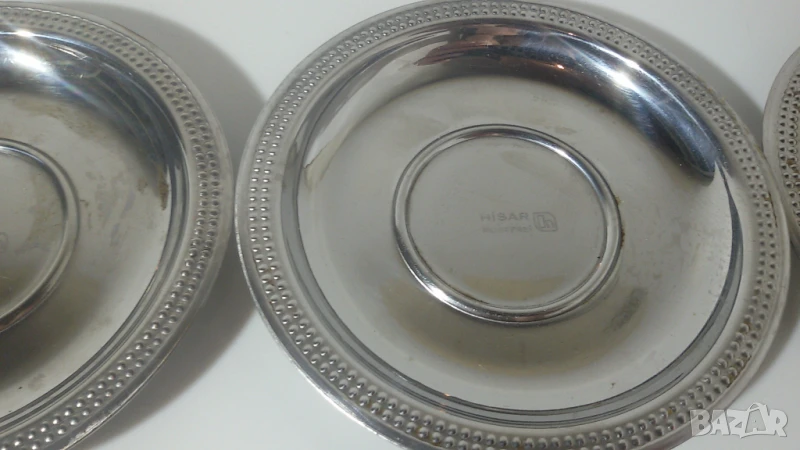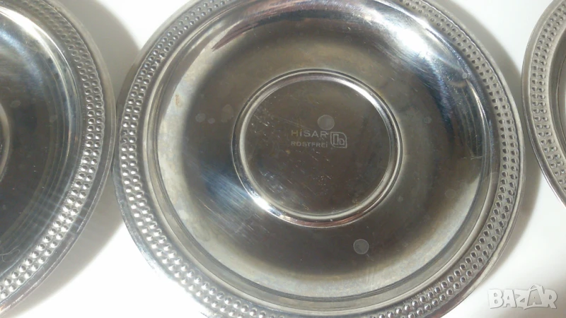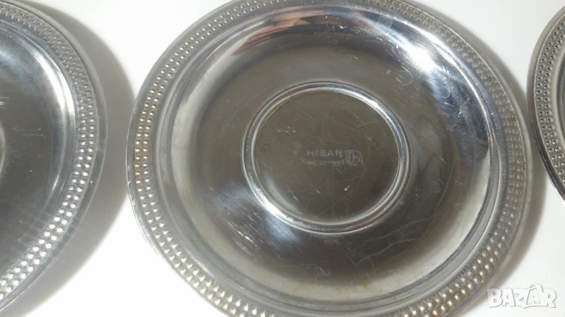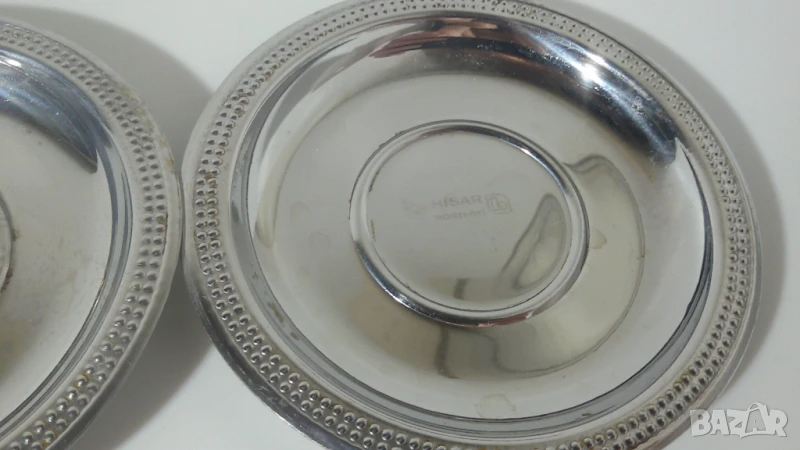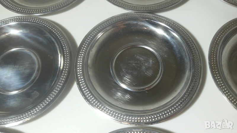 Чинийките имат следи от употреба. Някои са надраскани. Повечето имат следи от капки, след като са били измити и са съхнали, но би трябвало лесно да може да се махнат. Някои имат малки петънца от мазнина (точици), които също могат да се махнат при старателно измиване.