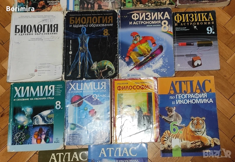 Комплект различни учебници по стара програма, 19 броя с атласи