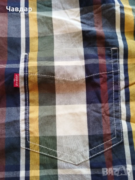 Мъжка карирана риза Levi's - 100% памук, цвят - многоцветен. Размер по етикет XXL - ръст 180-190 см., гръдна обиколка 110 см. Имерени: рамо - 54 см., височина (до яката - гръб) - 78 см., ръкав (от рамото) - 66 см., подмишници - 70 см. НОВА с ЕТИКЕТ. Предлага се с опция преглед, но без тест (нови тениски, блузи и ризи - без тест). Цена - 35 евро.