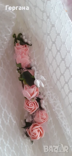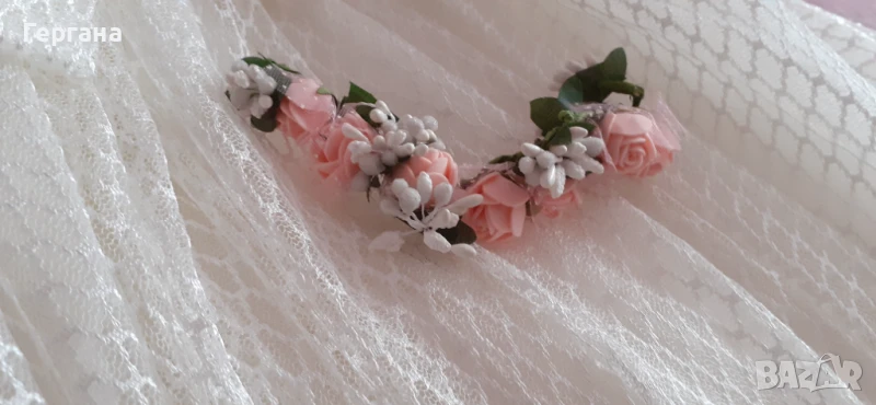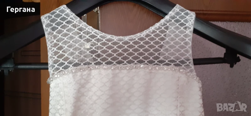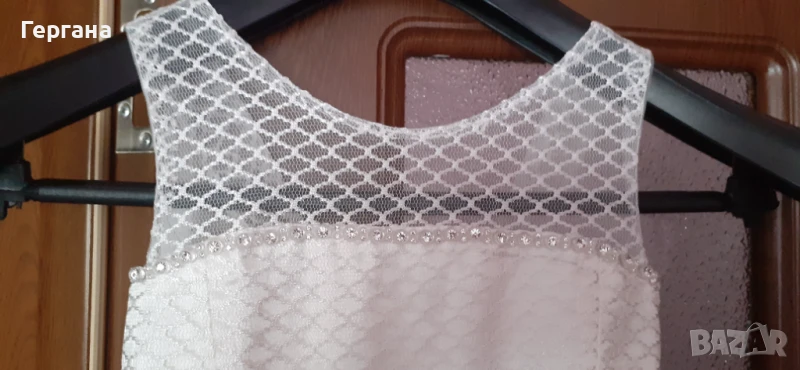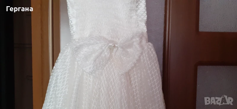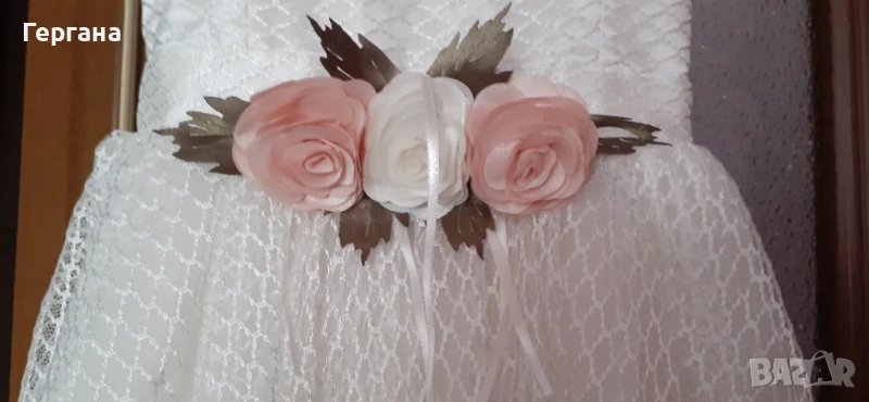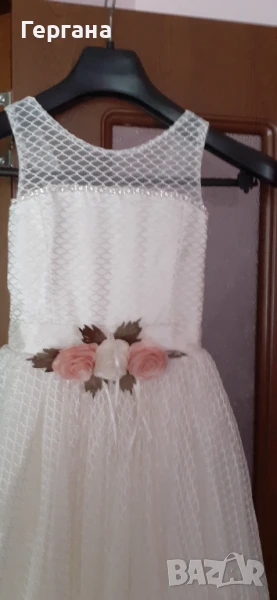 Много красива шаферска рокля за малка принцеса, която няма как да остане незабелязана с нея. Размерите ѝ са следните: дължина 110 см. (с възможност за отпускане около 3 см.) и ширина под гърдите 30 см. едностранно, като на гръбчето е с ластик, което позволява детето да се чувства по-комфортно. Към роклята има и цвете за закачане в косата.