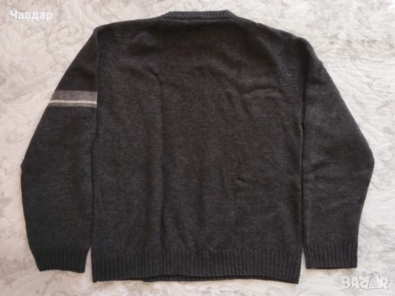 2. Мъжки пуловер Levi's - 70% памук и 30% вълна, цвят - сив. Размер по етикет - XL., ръст 175-180 см., гръдна обиколка 105 см. Измерени: рамо - 52 см., височина - 74 см., ръкав (от рамото) - 70 см., подмишници - 60 см. В отлично състояние (практически нов). Цена - 25 евро.