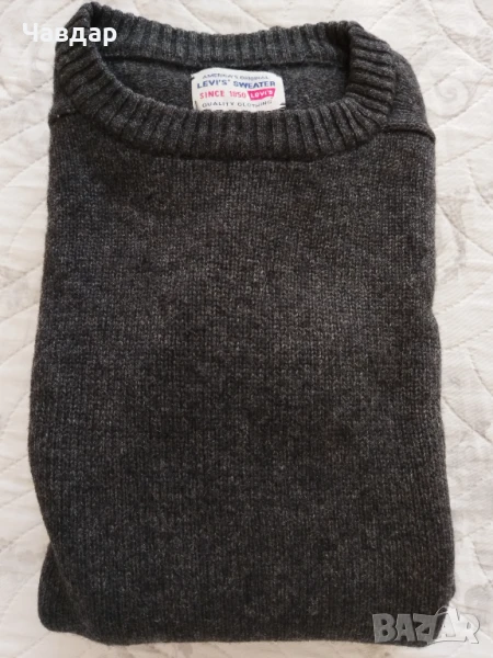 1. Мъжки пуловер Levi's - 100% вълна, цвят - тъмносив. Размер по етикет - XL. Измерени: рамо - нефиксирано, височина - 74 см., ръкав (от яката) - 84 см., подмишници - 64 см. В отлично състояние (практически нов). Цена - 30 евро.