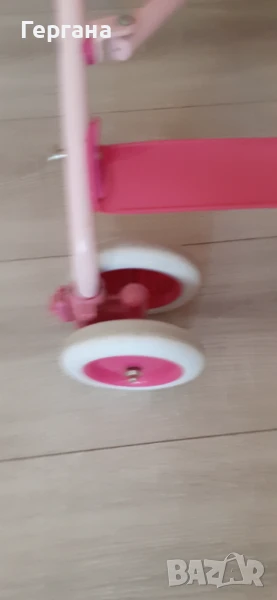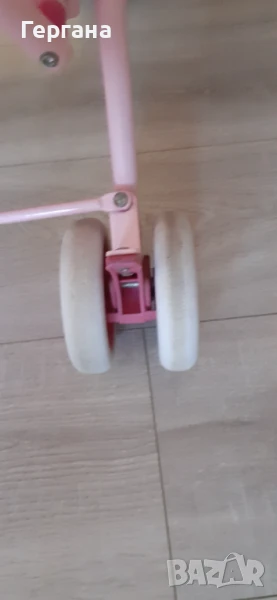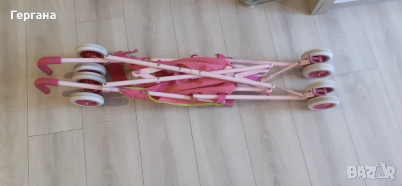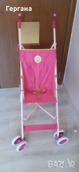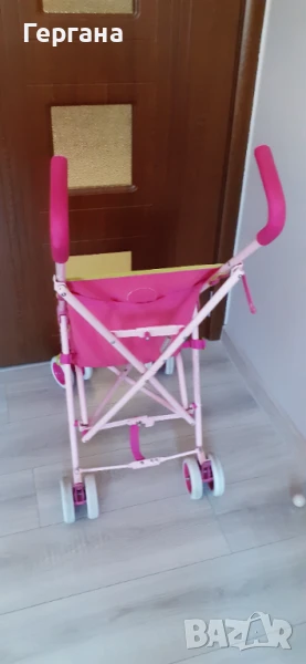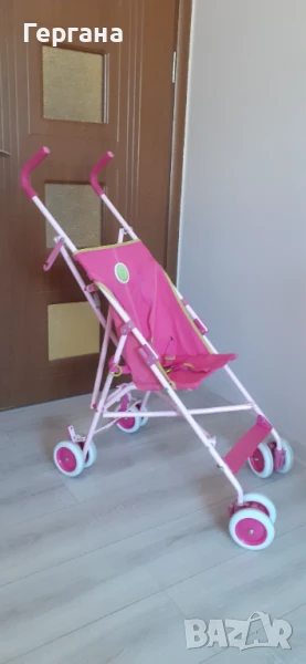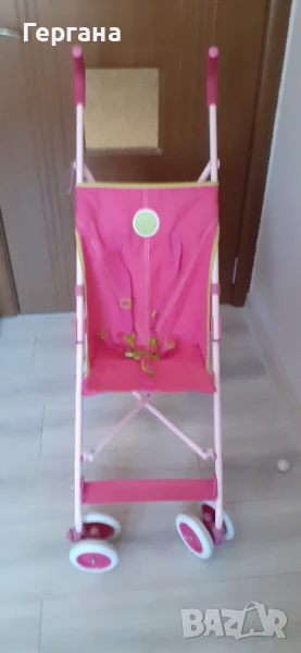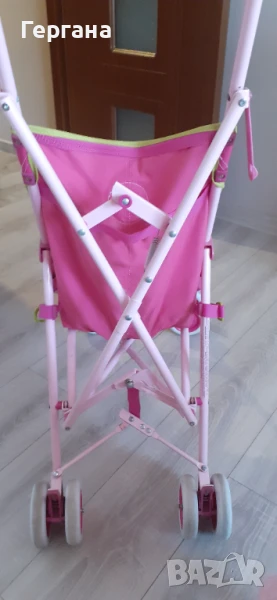 Красива и много практична детска количка в розово, цикламено и неоново зелено. Лесна за сглобяване, разглобяване, лека и маневрена. Има едно положение - седнало. Без каквито и да е забележки. С нея детето Ви няма да остане незабелязано. Често са ме питали, дали не е количка за кукли :) Височина на дръжките 92-94 см.