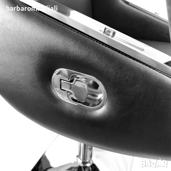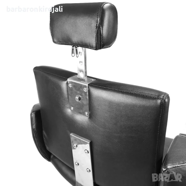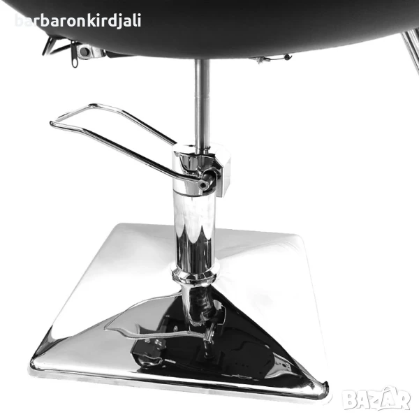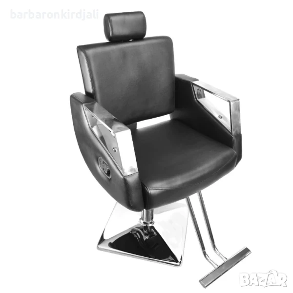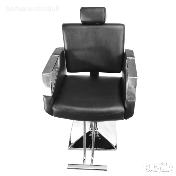 Бръснарски стол, регулируем по височина, с поставка за краката. Столът е идеален и се вписва във всеки фризьорски салон. Елегантен и ергономичен стил. Черната еко кожа е хигиенична и практична. Оборудван е с поставка за крака, която го прави много удобен за клиента. Има удобен механизъм за регулиране на височината.