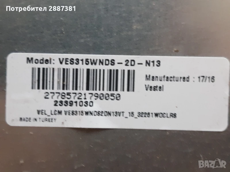 FINLUX 32-FHB-4000 счупен дисплей VES315WNDS-2D-N13