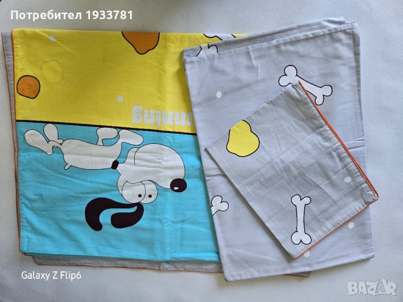 Спален комплект от 100% Памук. Спалното бельо е изработено не само от приятен за тялото мек десен, но и е представен в красиви анимационни герои. Произход: Българско производство Състав: 100% Памук Размери: Плик 150/200 ; Чаршаф долен 150/220 ; Калъфка 50/70 1 брой ;