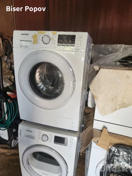 Запазени перална и сушилна Самсунг внос от Дания, цена за комплект (за двете). Пералната е с обем 8 кг. центрувуга на 1400 оборота. Може евентуално да се доставят и инсталират.