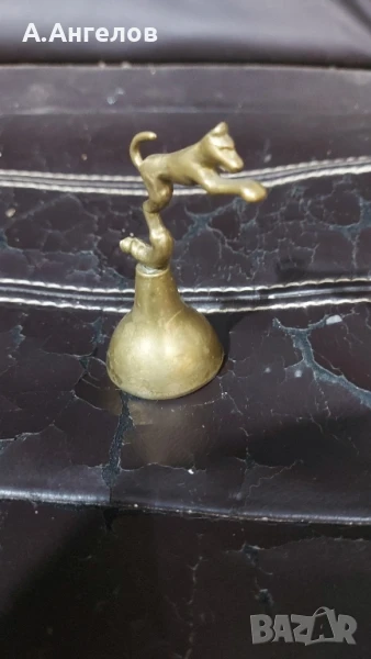 Старинен бронзов гасител на свещи с фигура на куче. Височина- 9см.
