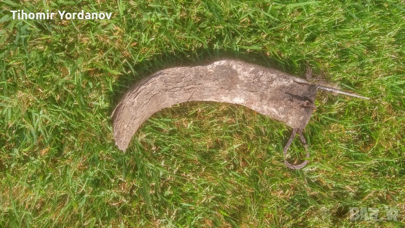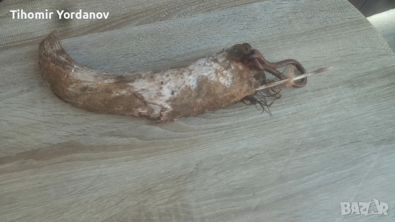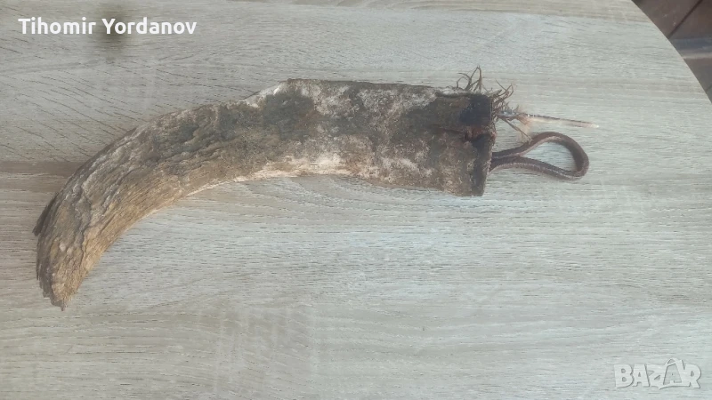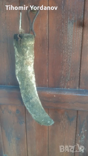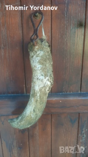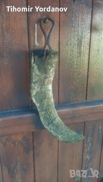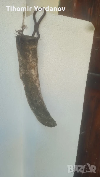 Стар автентичен Катраник от биволски рог.За украса и декорация на дома, битов селски кът, механа и градина.Размери от снимките.