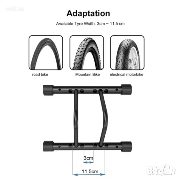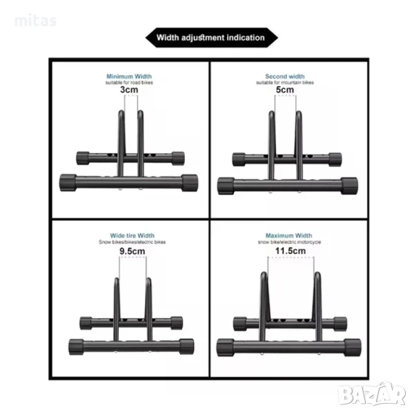 Подходяща за велосипеди с размер на колелата от 20" до 29", което я прави практично решение както за планински, така и за шосейни, градски и хибридни велосипеди. Благодарение на този широк диапазон, стойката може да се използва от различни членове на семейството или в сервизни и търговски обекти.