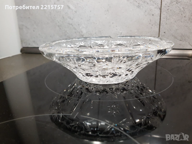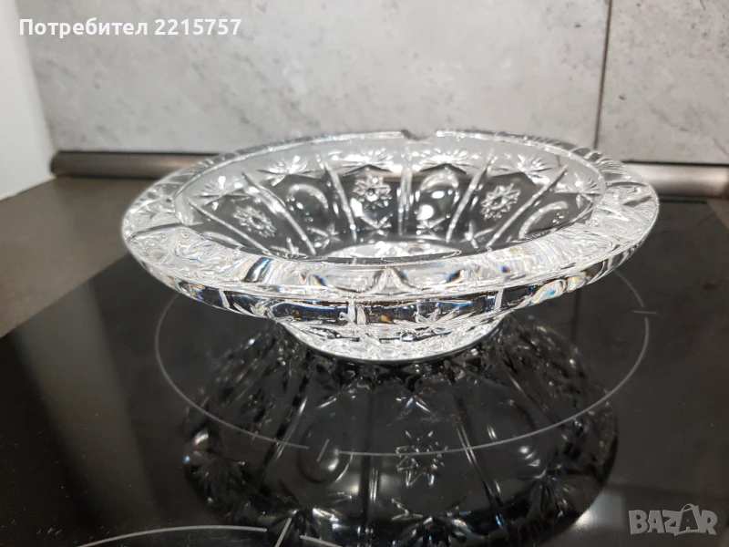 Кристален пепелник от Италия. Вис.5см, диам.18см. Цена 25лв.