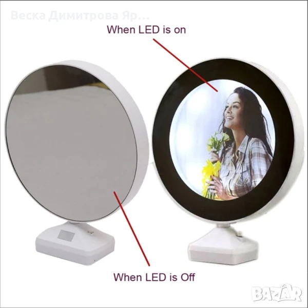 Функция: Огледало в изключено състояние; светеща снимка при включване;