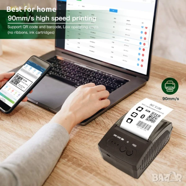 【Спестени пари】: Термопринтерите за касови бележки NETUM използват термопечатаща глава вместо мастило, не се изискват лента или касета, използват само термохартия 58X 30 мм. И обикновено са по-малки, по-тихи, по-бързи и по-енергийно ефективни от другите термопринтери.
