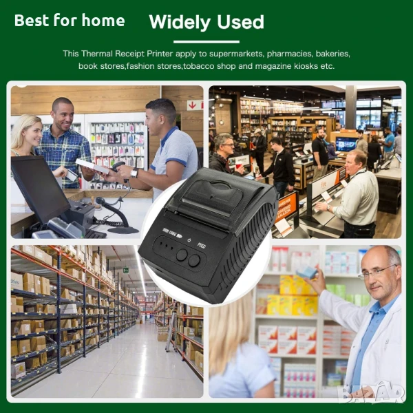 【Широки приложения】: Този Bluetooth принтер за касови бележки може да се използва с Android 4.0 IR, споразумение IRCOMM или споразумение POS SPP и др. Удобен за работа на открито, като например печат на сметки за таксита, печат на касови бележки за административни такси, печат на касови бележки по пощата, печат на информация за поръчки в ресторанти, печат на информация за онлайн плащания и др.