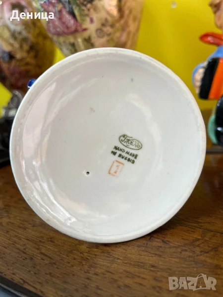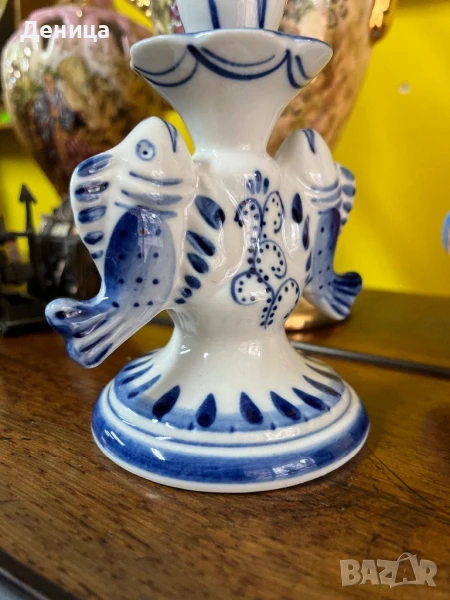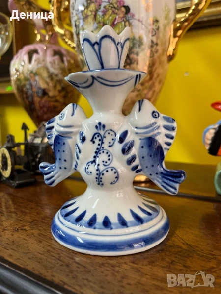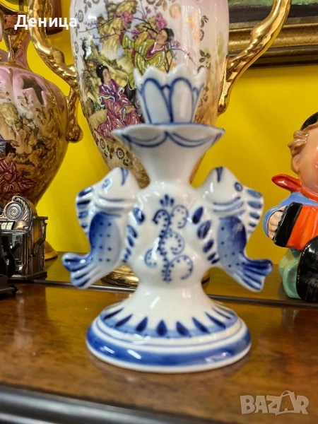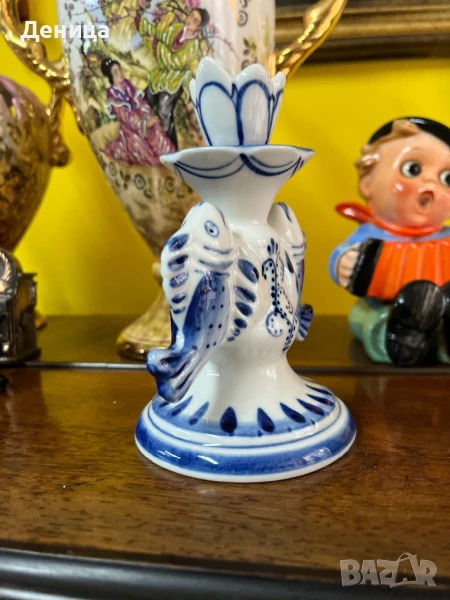Гжел 🫶 Свещник Русия Ръчно рисуван Височина-13.5 см → Обява 51322790