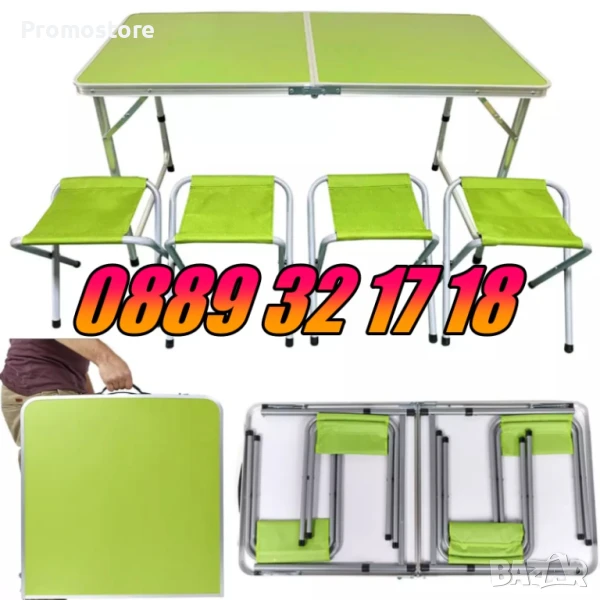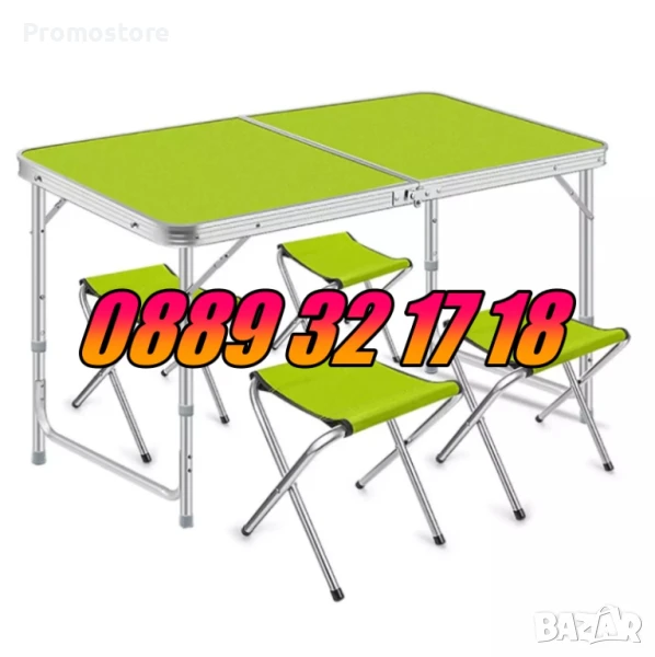 Сгъваема къмпинг маса с 4 стола 120х60 см, градинска маса 120х60 със столчета