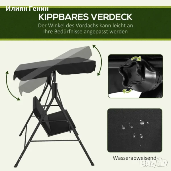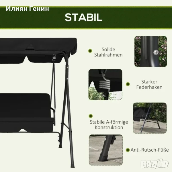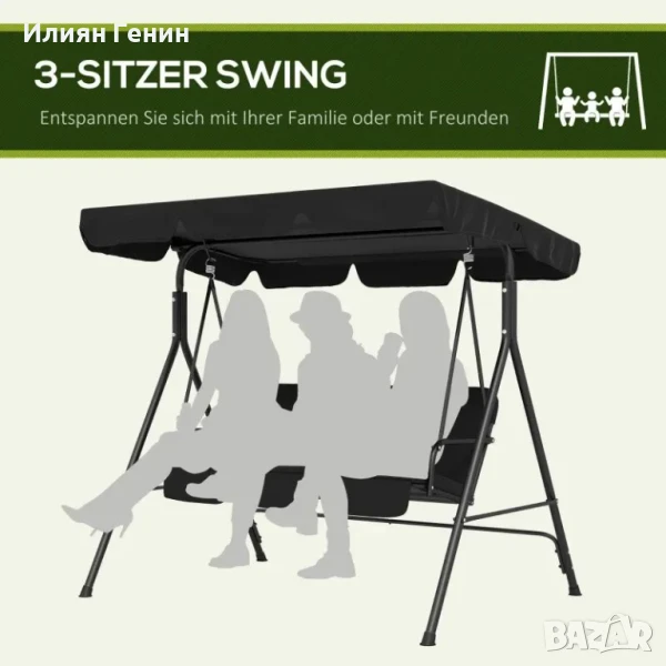 Outsunny 3-местна градинска люлка, 172 см x 110 см x 153 см, черна - 200.00лв.