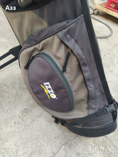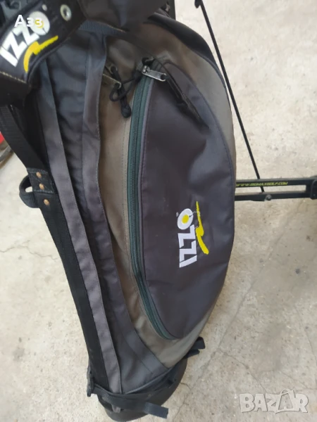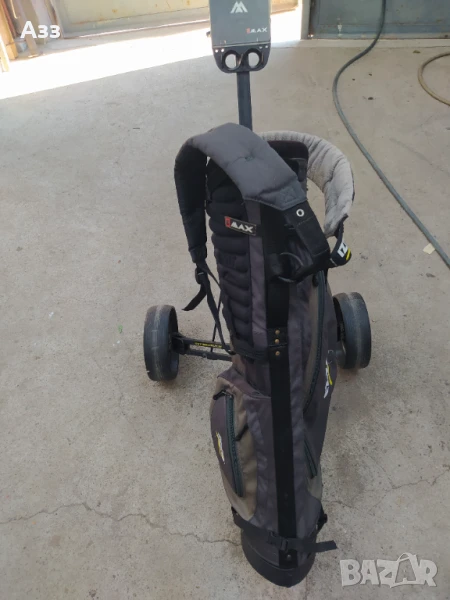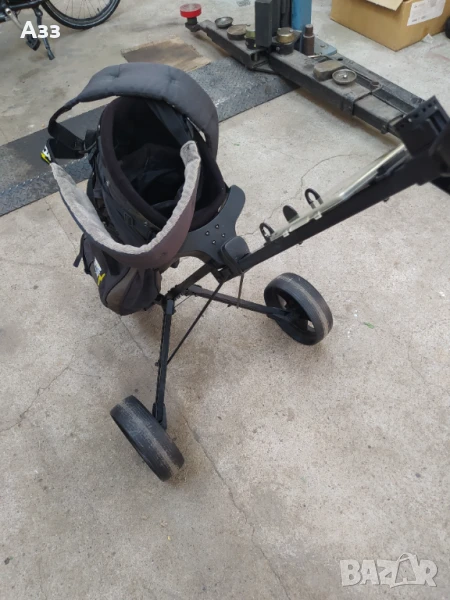 Количка за голф стикове комплект със сак. Сака е оборудван със презрамки за гърба , сгъваема. Употребявана. На смс не отговарям.