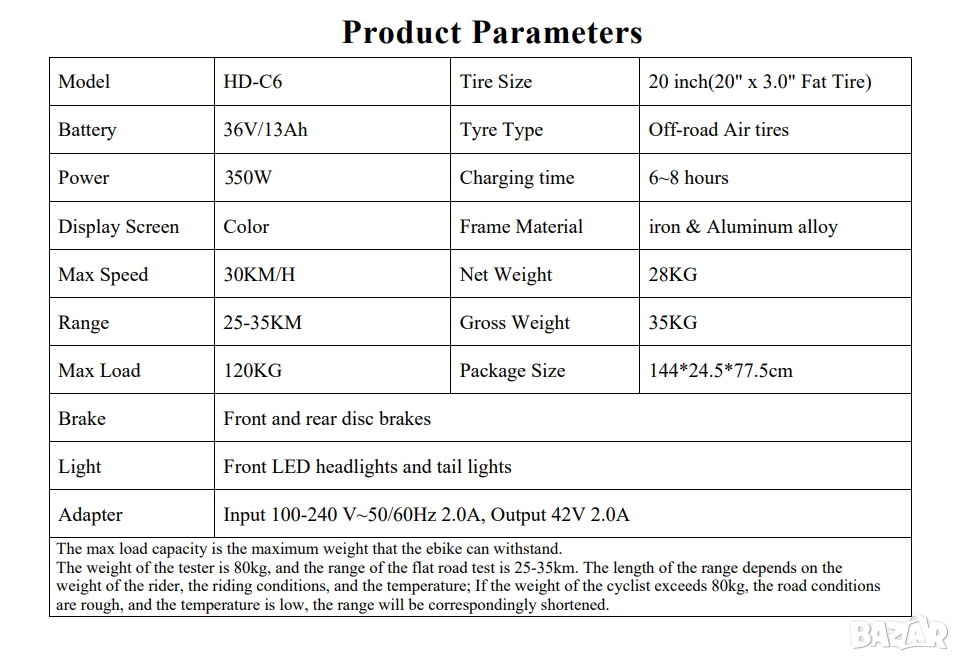 Електрически велосипед/колело HIDOES C6 350W 13AH