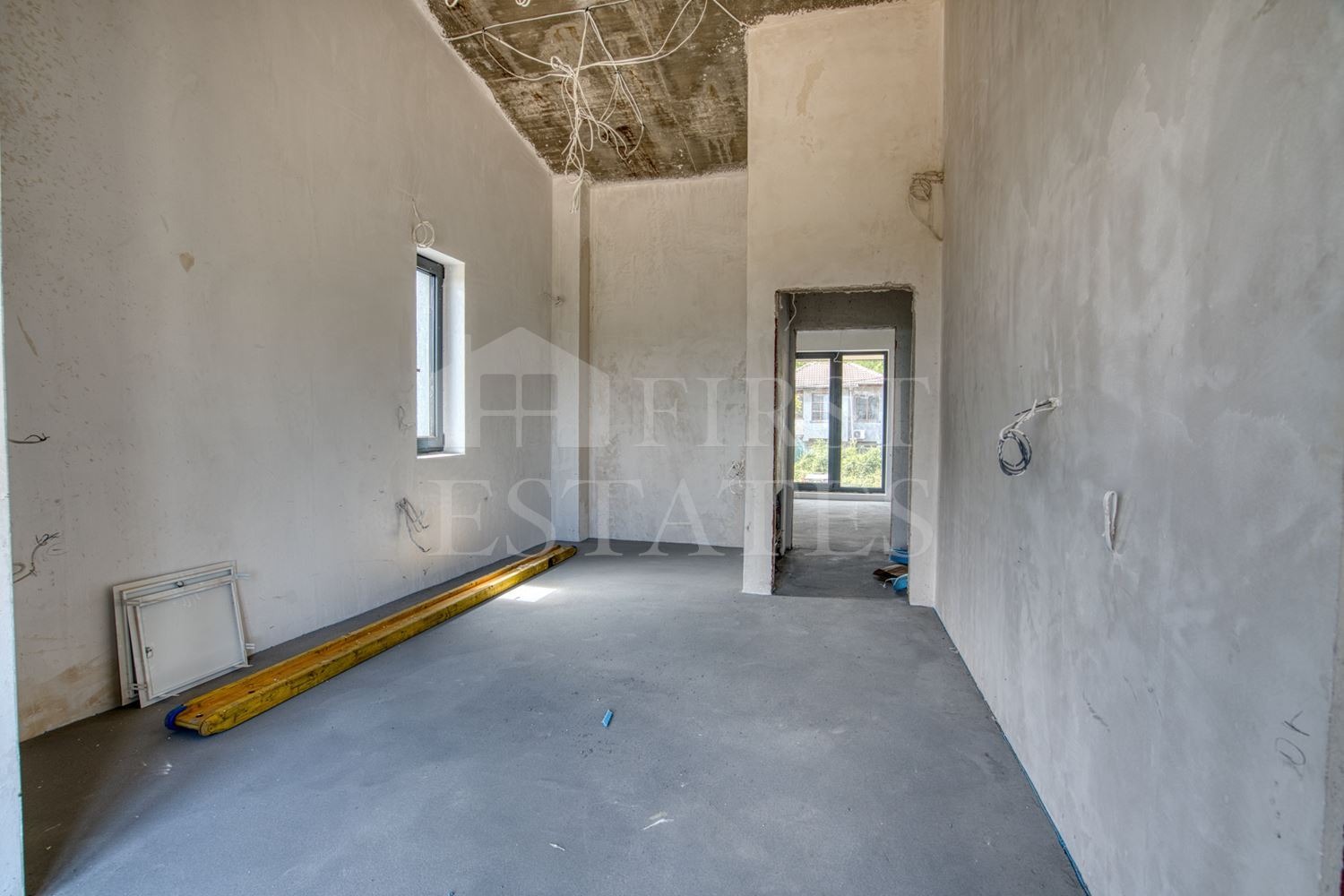 Първи етаж от 74.70 кв.м., състоящ се от хол с кухненски бокс и прекрасна веранда, тоалетна и коридор.