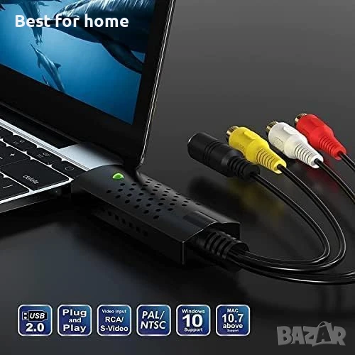 【Поддържа всички видео формати】:USB 2.0 адаптер за видеозаснемане осигурява връзка между компютър и видео устройство с RCA конектор или Audio/S-Video конектор, като VHS, VCR, DVD. Поддържа всички видео формати: DVD+/-R/RW, DVD+/-VR и DVD-Video.