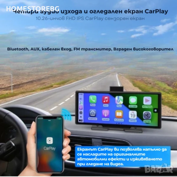 CarPlay+android auto Mirror Link позволява да свържеш телефона си с екрана на колата и да ползваш навигация, медии и др. директно от него.