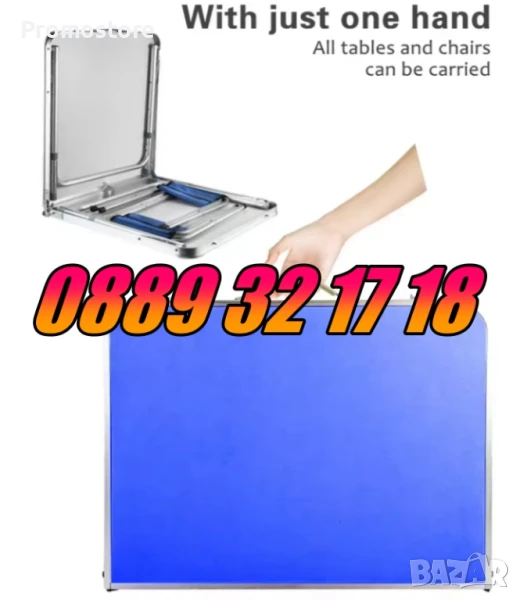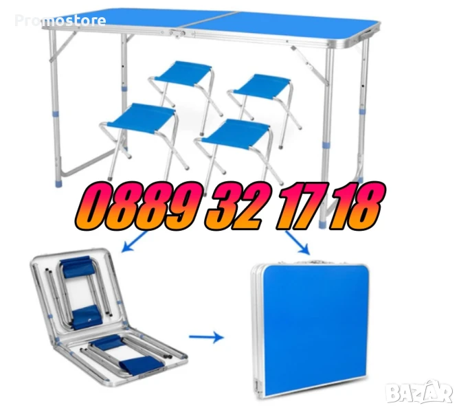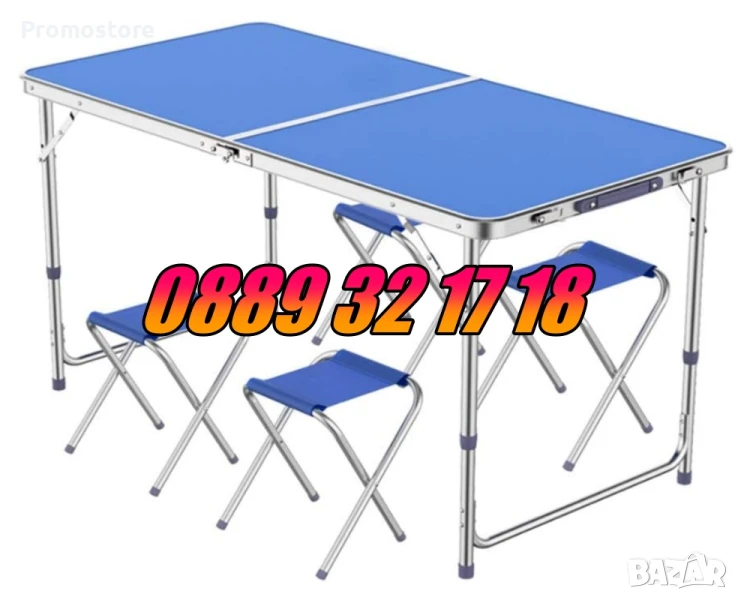 Сгъваема къмпинг маса с 4 стола 120х60 см, градинска маса 120х60 със столчета, синя