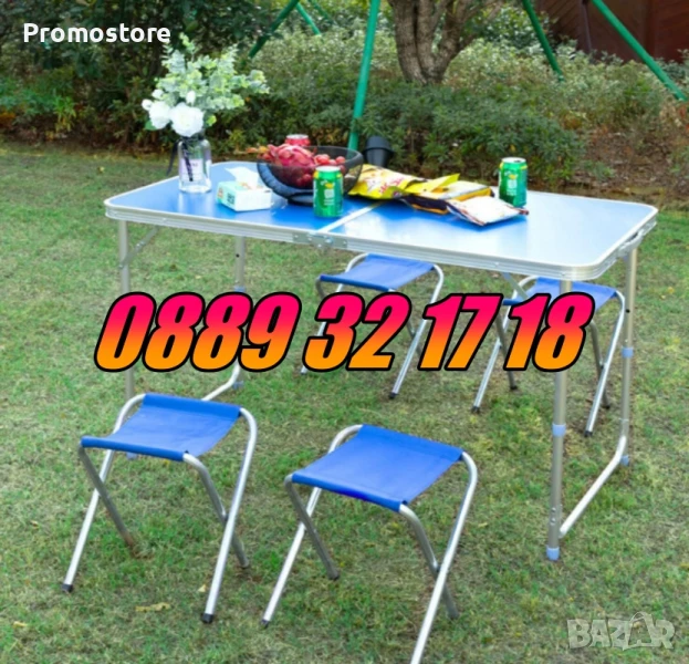 Сгъваема къмпинг маса с 4 стола 120х60 см, градинска маса 120х60 със столчета