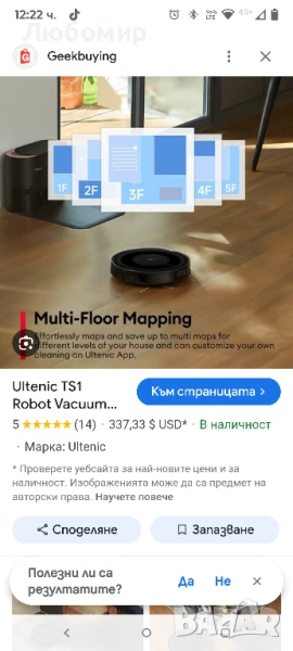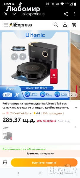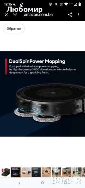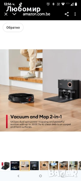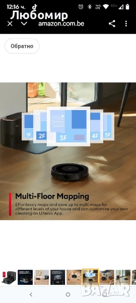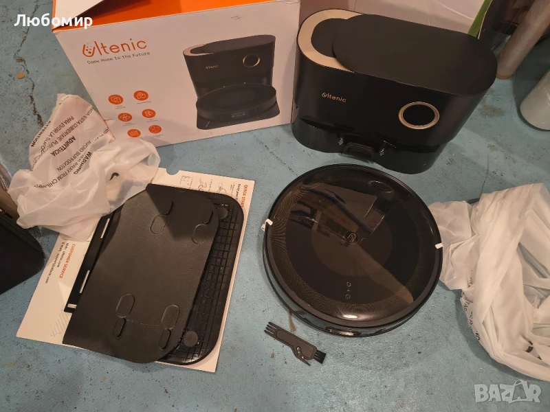 използвана 10 пъти....Роботизирана прахосмукачка Ultenic TS1, самоизпразваща се станция, 3000Pa, ротационно почистване с моп, Lidar навигация, управление чрез приложение, Alexa/Google Home/Siri, идеална за килими, твърди подове, домашни любимци.С височина само 7,3 см, нашата роботизирана прахосмукачка е по-тънка от повечето лазерни роботи на пазара. Но не се заблуждавайте от размера ѝ - тя има две въртящи се метли за ефективно почистване на подове. Тя също така знае как да разпознава килимите и да ги избягва при пране.