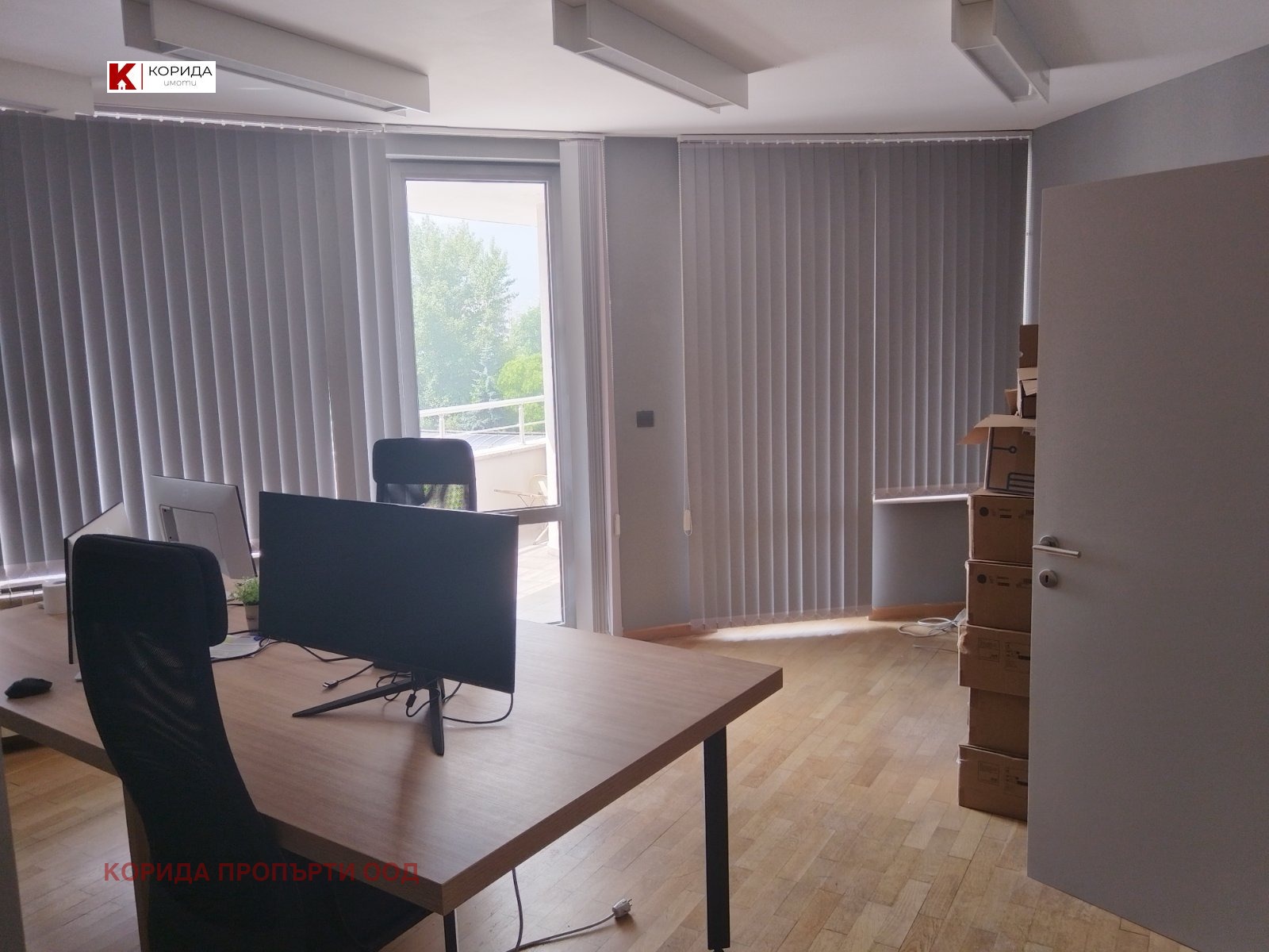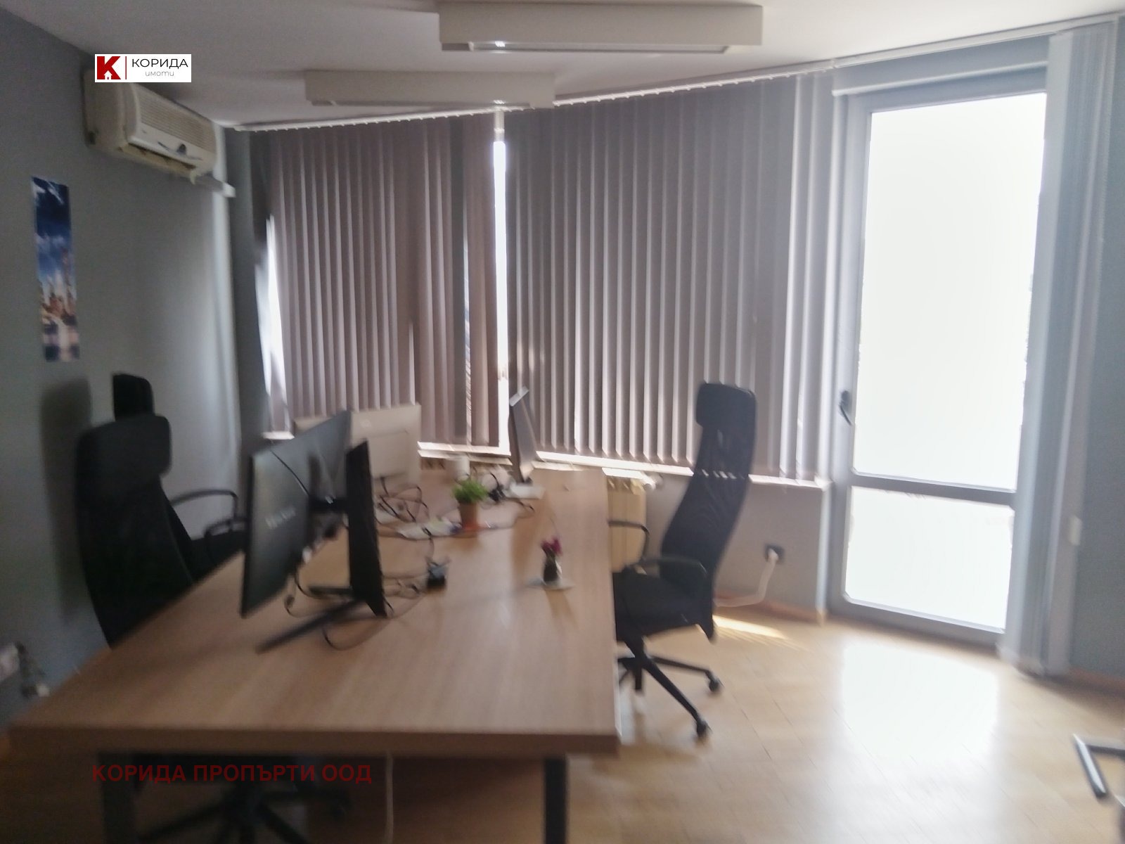 Имота е напълно обзаведен с офис мебели правени по поръчка за този имот.