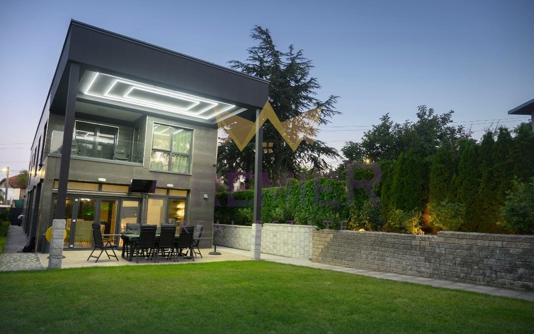 ИМОТИ ПРЕМИЕР Ви представя луксозна дизайнерска къща в м-т Траката, разположена на два етажа с двор, басейн и множество екстри.