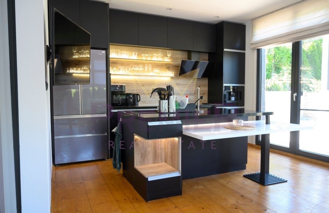 Фотоволтаична система с батерии, собствен водоизточник, термопомпа, слънчев бойлер, джакузи, гардеробна, кабинет, перално помещение , отопляем гараж, видеонаблюдение, СОТ, сейф, градина с басейн, клетка за куче, барака за инструменти.
