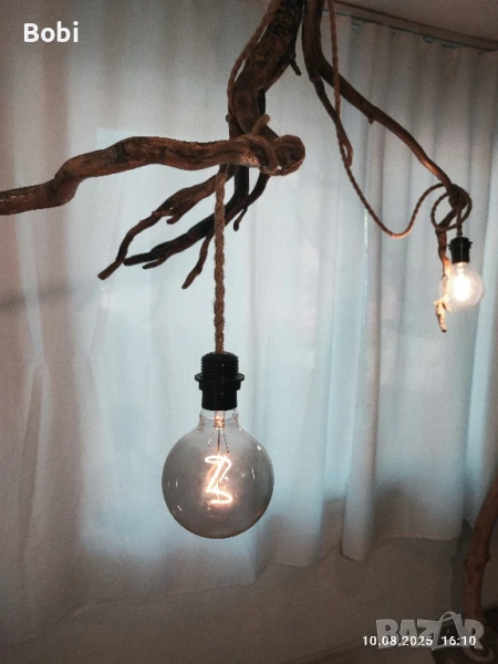 "Ръчно изработен таванен полилей с дизайн, наподобяващ естествен дървен корен. Уникалната форма и текстура придават органичен и артистичен вид, който внася топлина и характер в помещението. Подходящ за винтидж, рустик или еко интериори, като служи едновременно за осветление и впечатляващ декоративен акцент."