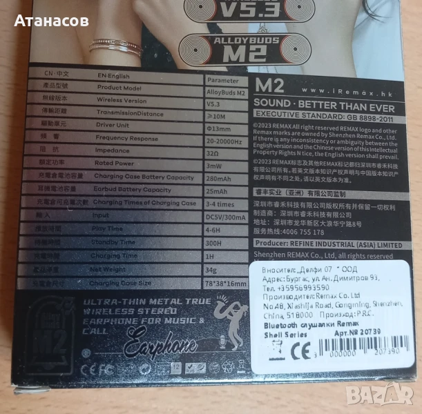 Bluetooth слушалки Remax Shell AlloyBuds M2 - 14€/28лв., снимка 1 - Bluetooth слушалки - 51328406 Bluetooth слушалки Remax Shell AlloyBuds M2 - 14€/28лв., снимка 2 - Bluetooth слушалки - 51328406 Bluetooth слушалки Remax Shell AlloyBuds M2 - 14€/28лв., снимка 3 - Bluetooth слушалки - 51328406 Bluetooth слушалки Remax Shell AlloyBuds M2 - 14€/28лв., снимка 4 - Bluetooth слушалки - 51328406 Bluetooth слушалки Remax Shell AlloyBuds M2 - 14€/28лв., снимка 5 - Bluetooth слушалки - 51328406 1/5