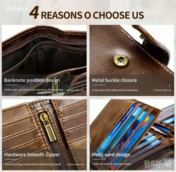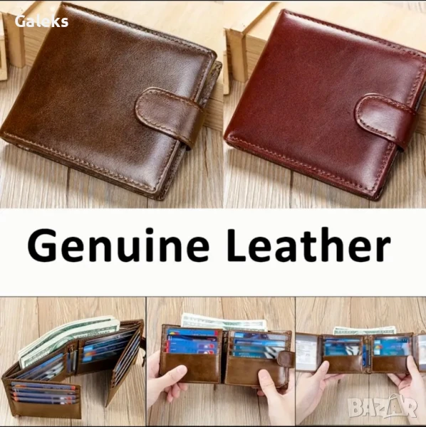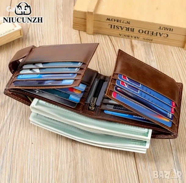 Мъжки защитени кожени портфейли ! Елегантни и големи кафяви естест. кожа!