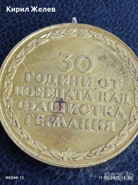 Медал от соца 30г. От ПОБЕДАТА НАД ФАШИСТКА ГЕРМАНИЯ за КОЛЕКЦИОНЕРИ 25488 → Обява 51331341