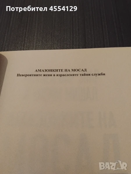 Купищата книги, писани за Мосад, очертават подвеждащ образ – сянка на една армия от смели, силни и умни мъже, подобни на Джеймс Бонд и други супершпиони, излезли от филмите, телевизионните сериали или евтината литература. Дошло е времето да се замени този въображаем силует с реалността, в която, редом с мъжете, срещаме и жените на Мосад.