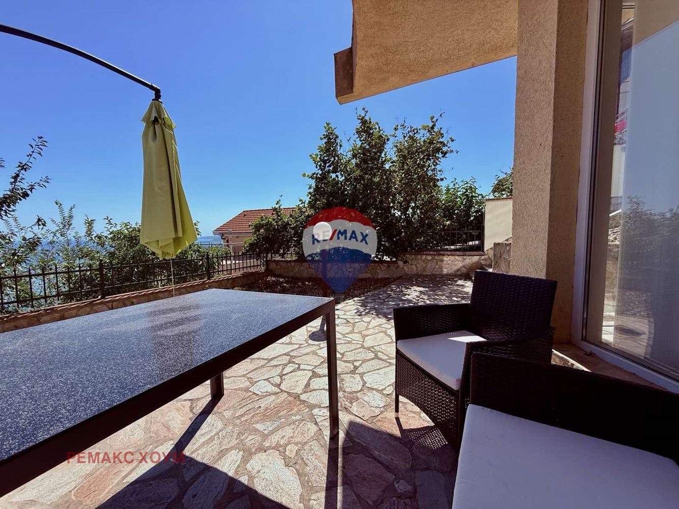 - тераса тип английски двор с площ от 3.37 кв.м, с гледка към морето и достъп от всекидневната;