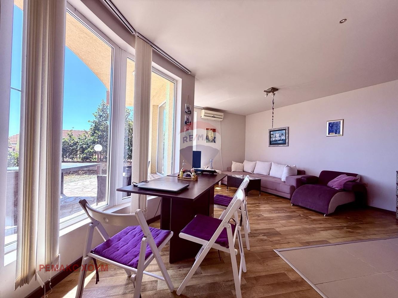 - просторна и слънчева всекидневна с кухненски бокс и трапезария с площ от 33 кв.м, с гледка към морето и изход към тераса тип английски двор;