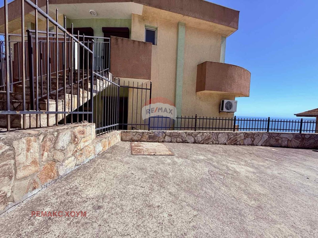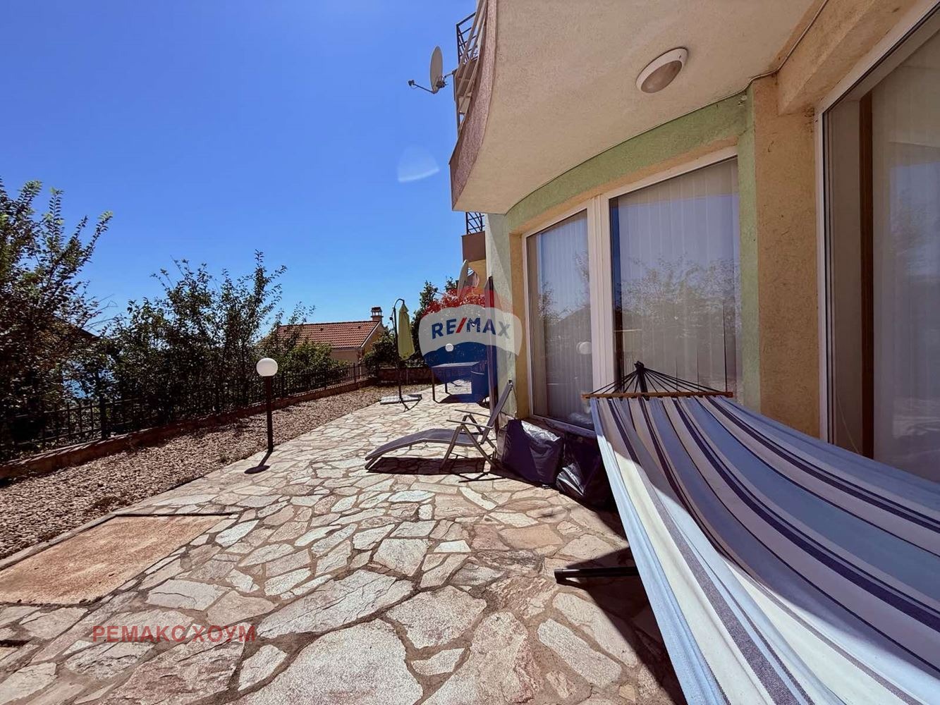 Имотът се намира в жилищна кооперация от седем апартамента. НЯМА ТАКСА ПОДДРЪЖКА! Общите части на сградата са в добре поддържано състояние. Дворът е озеленен и аранжиран, от него се открива прекрасна морска панорама. Налични са летни мебели, шезлонги, хамак и чадър. Обособена е зона за релакс и отдих, има възможност да се направи и барбекю зона. Водата е включена към централния водопровод. Има изградена хидрофорна система за цялата сграда. Канализацията е на екологична септична яма, която не се нуждае от почиствания.